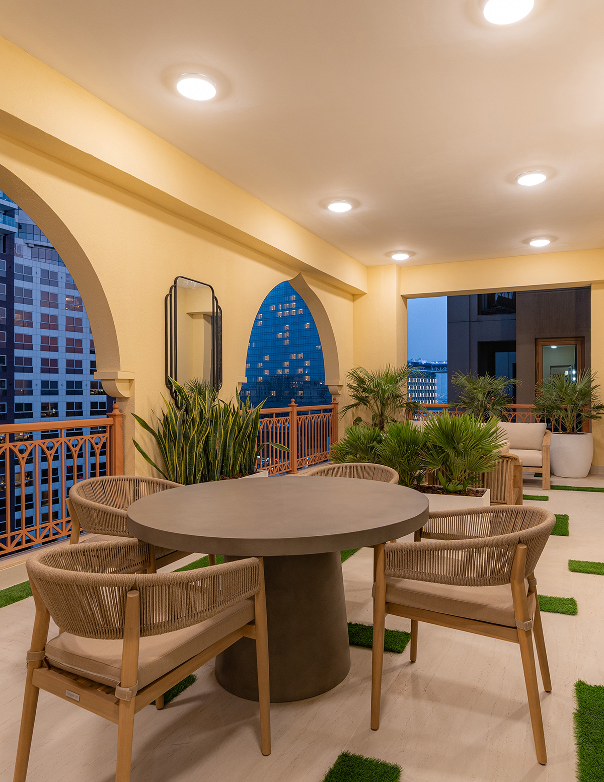 An extensive terrace with panoramic views of The Palm Jumeirah