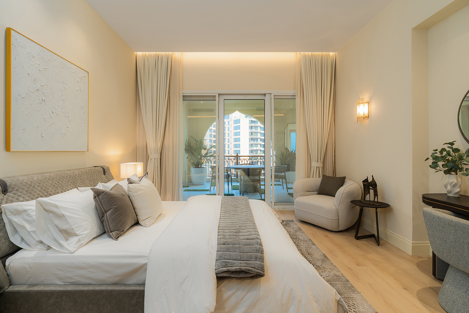 This exceptional, three-bedroom, turnkey apartment in one of The Palm Jumeirah’s most prestigious buildings has been extensively renovated to an extremely high standard by London-based interior design firm Wilben.