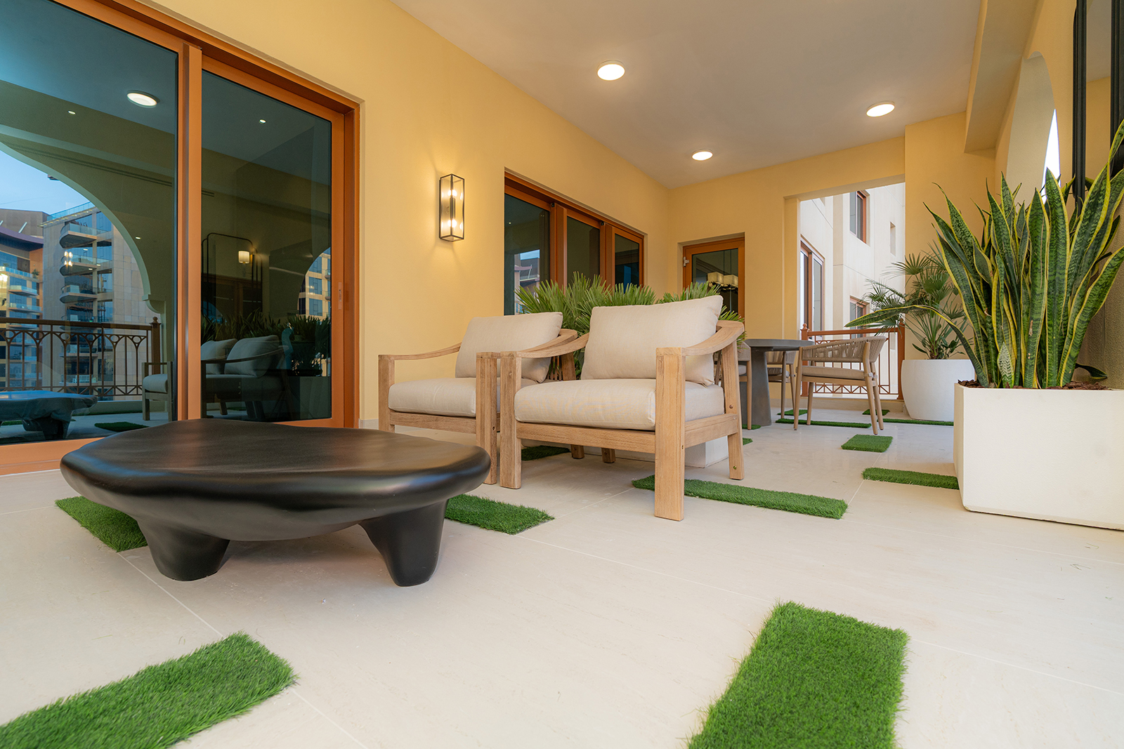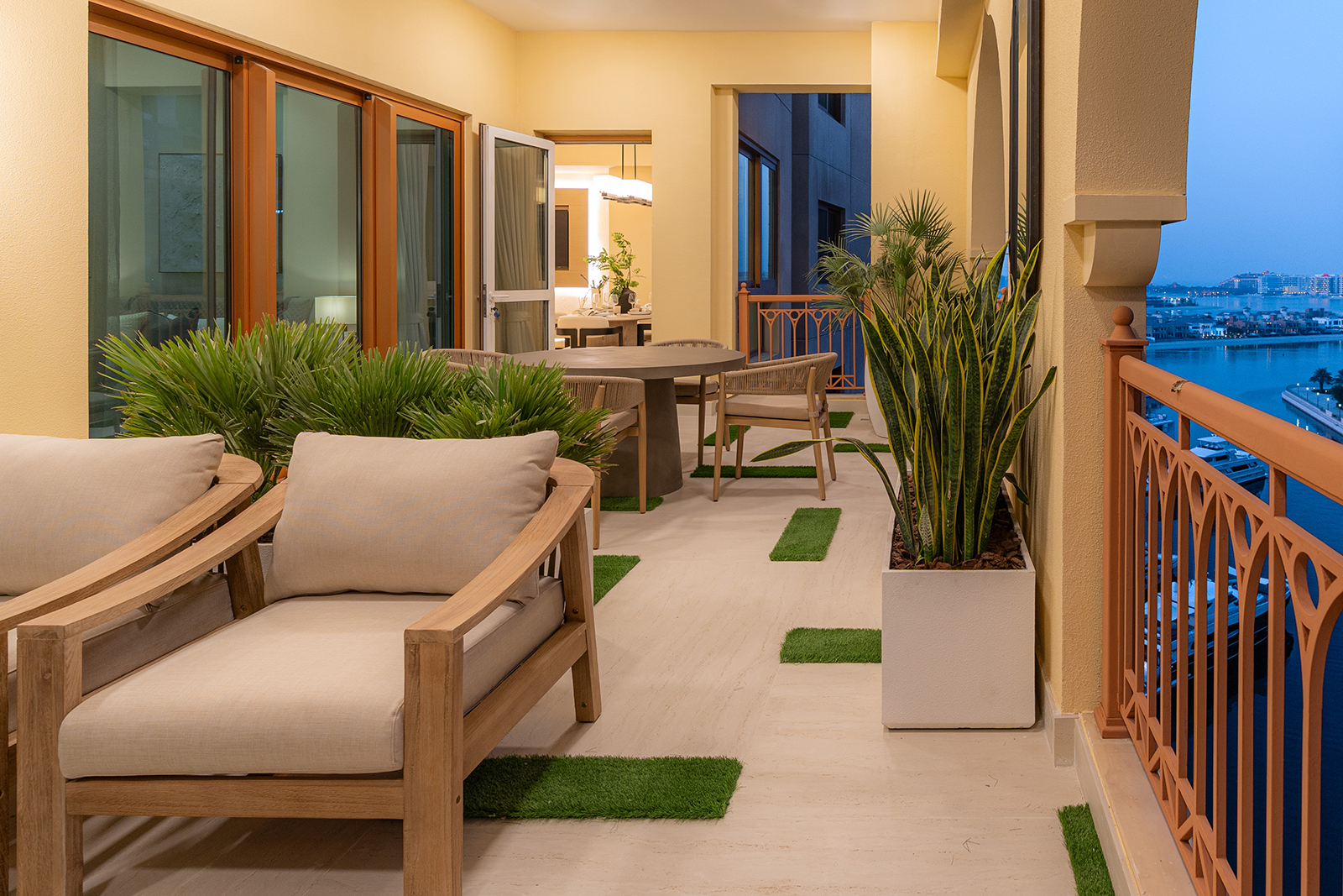An extensive terrace with panoramic views of The Palm Jumeirah